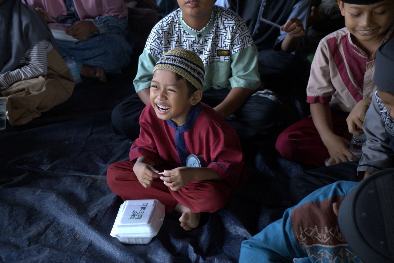 Kegiatan dimulai dengan belajar mengaji bersama adik-adik, dilanjutkan hafalan hadis, doa, serta sambutan dari panitia. Setelah itu, paket makanan dibagikan dengan tertib dan penuh kehangatan. Anak-anak tampak antusias saat menerima makanan, sebagian langsung menyantapnya dengan lahap, sementara ada pula yang memilih menyimpannya untuk keluarga di rumah. Untuk itu, tim juga memberikan tambahan paket agar bisa dibawa pulang.